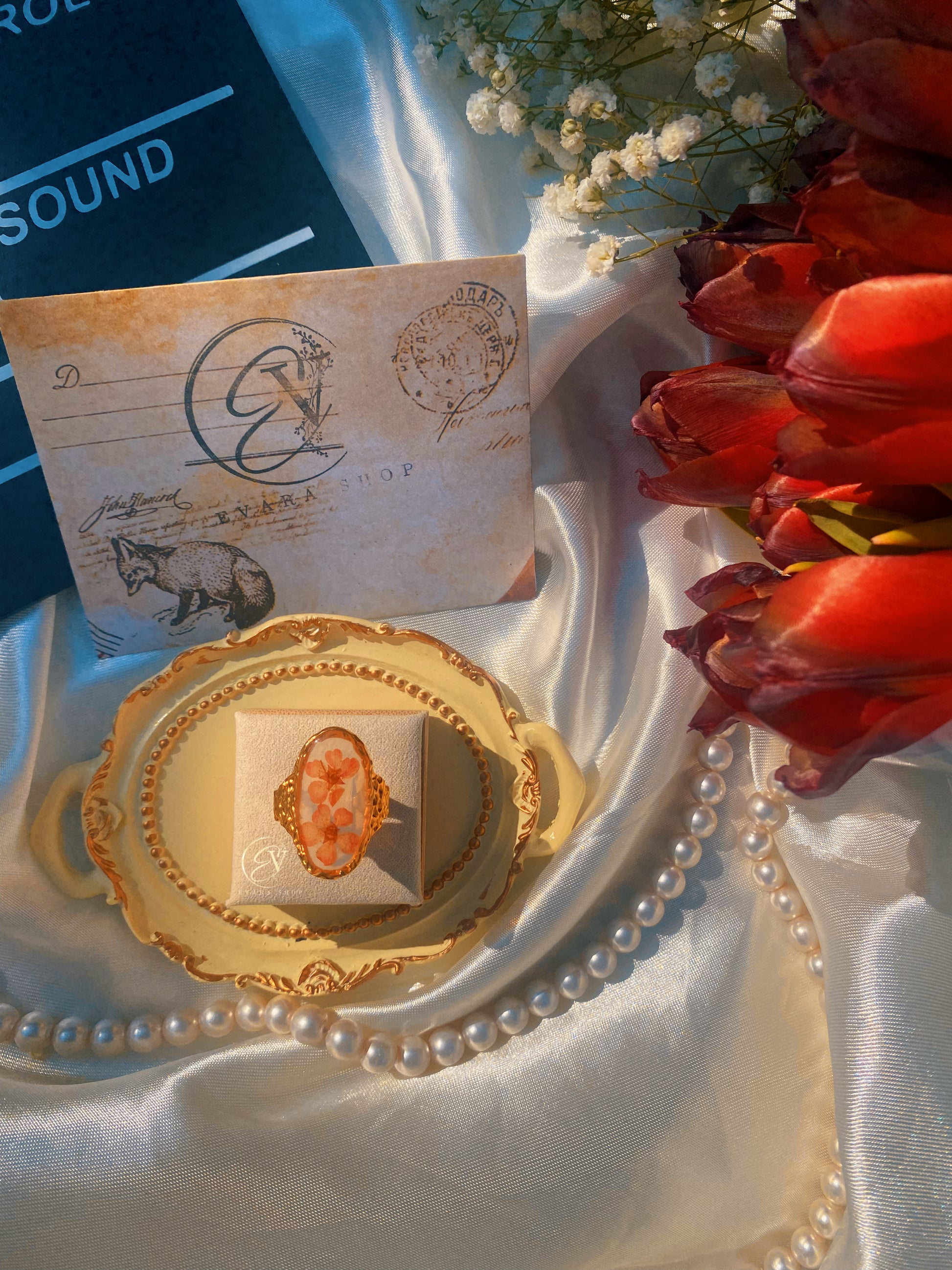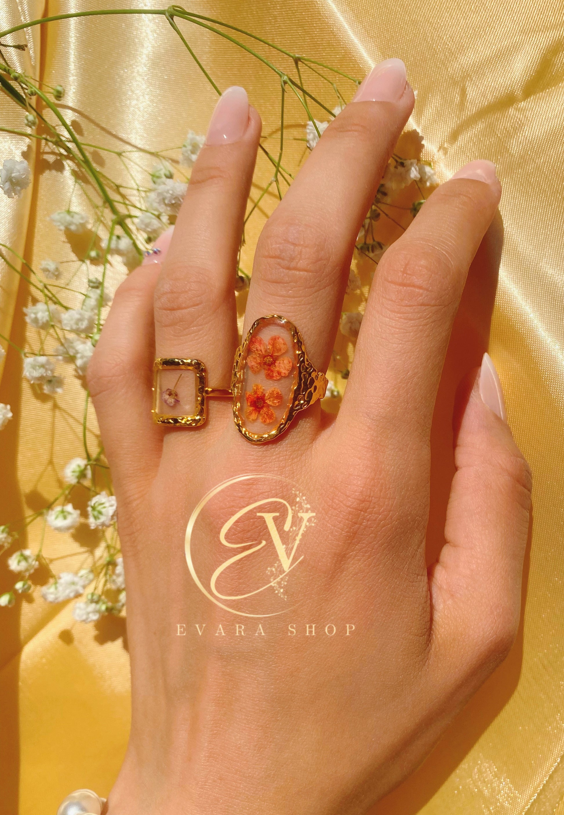 Stainless steel , gold-plated ring with a real pink dried flower – a soft garden treasure you can wear every day.🌸